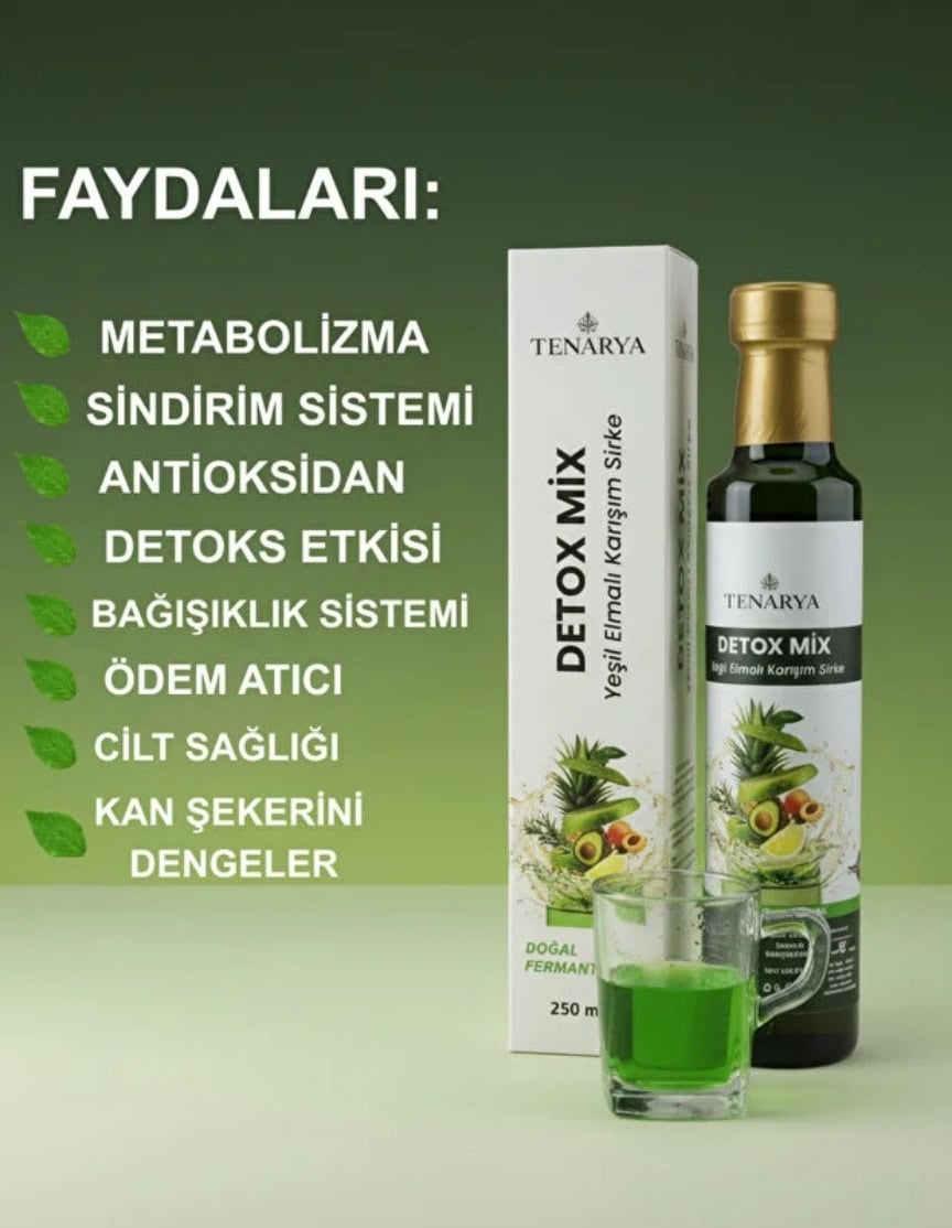 Fermantasyon ustalığıyla hazırlanan bu karışım, geleneksel yöntemlerle üretilmiş, %100 saf ve katkısız içeriğe sahip olan Tenarya Detoks Sirkesi / Detox Mix, modern yaşamın temposuna çözüm sunan bir seçenek olarak öne çıkar. Yerli üretim menşeili bu ürün, günlük rutininize kolaylıkla dahil edilebilecek sade ve etkili bir seçenek sunar.